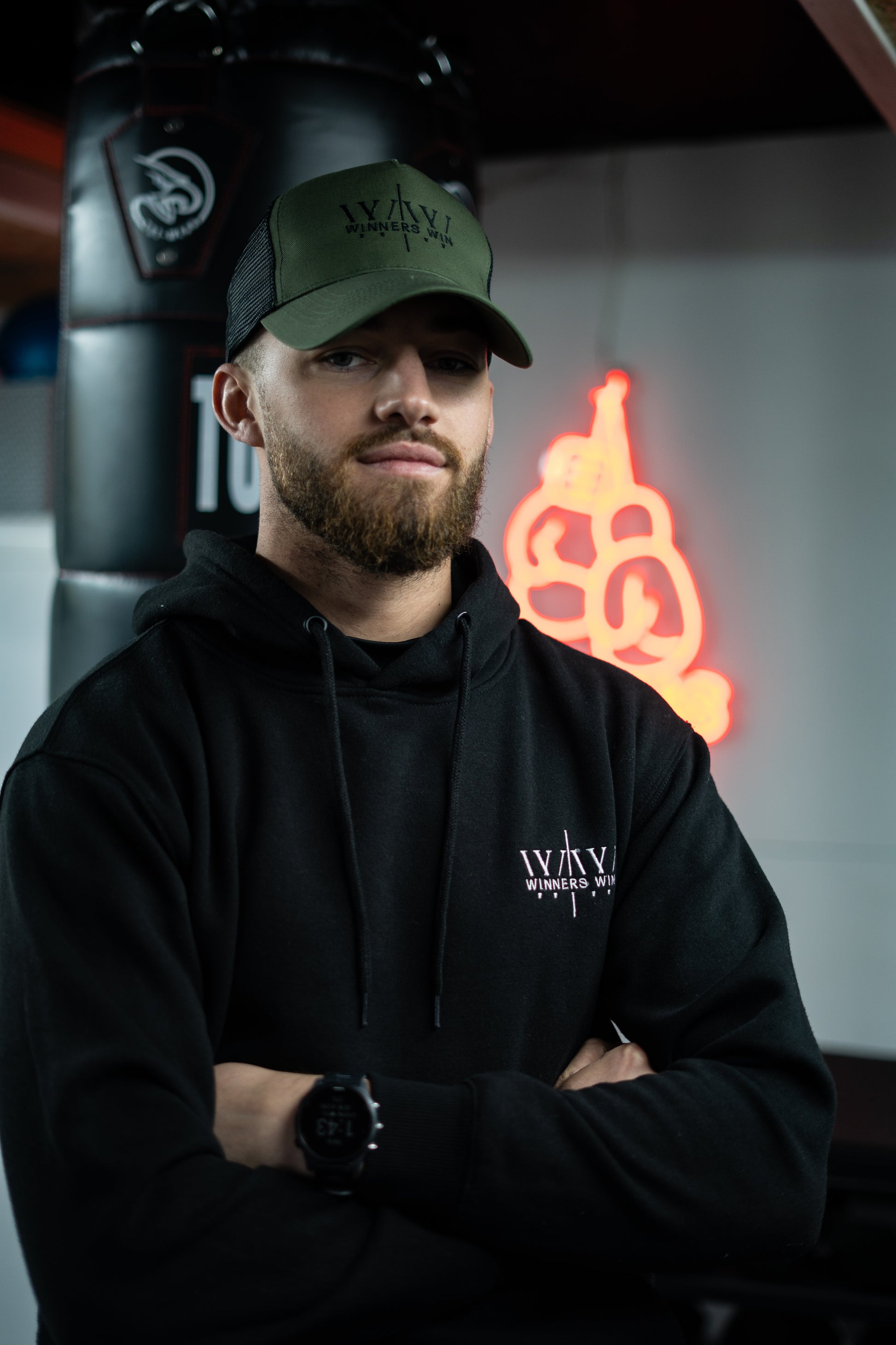 The earthy khaki tone paired with the bold black Winners Win logo creates a confident, understated look — ideal for athletes and achievers who want style without shouting. It represents discipline, drive, and the Winners Win mindset: show up, put the work in, and stand out effortlessly.