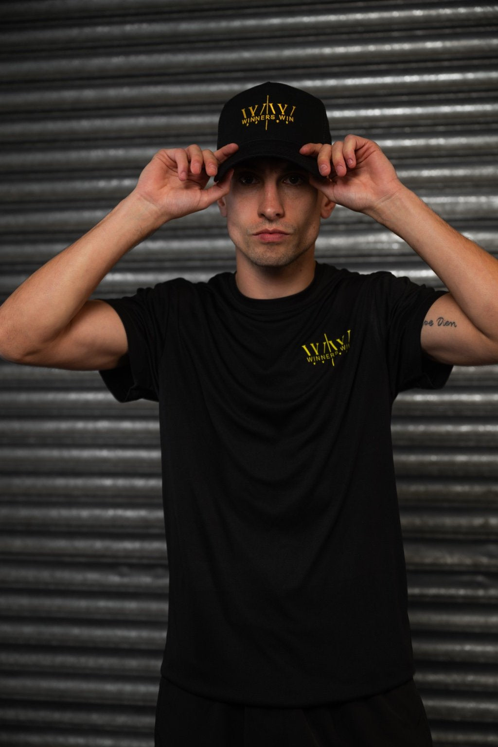 Step up your accessory game and showcase your ambition with the Winners Win Black hat. The ultimate symbol of success and determination designed for the modern achiever. This isn't just any cap; it's a statement piece, meticulously crafted to blend unparalleled style with everyday functionality. Making it the perfect companion for both your high-intensity running sessions and your daily ventures.