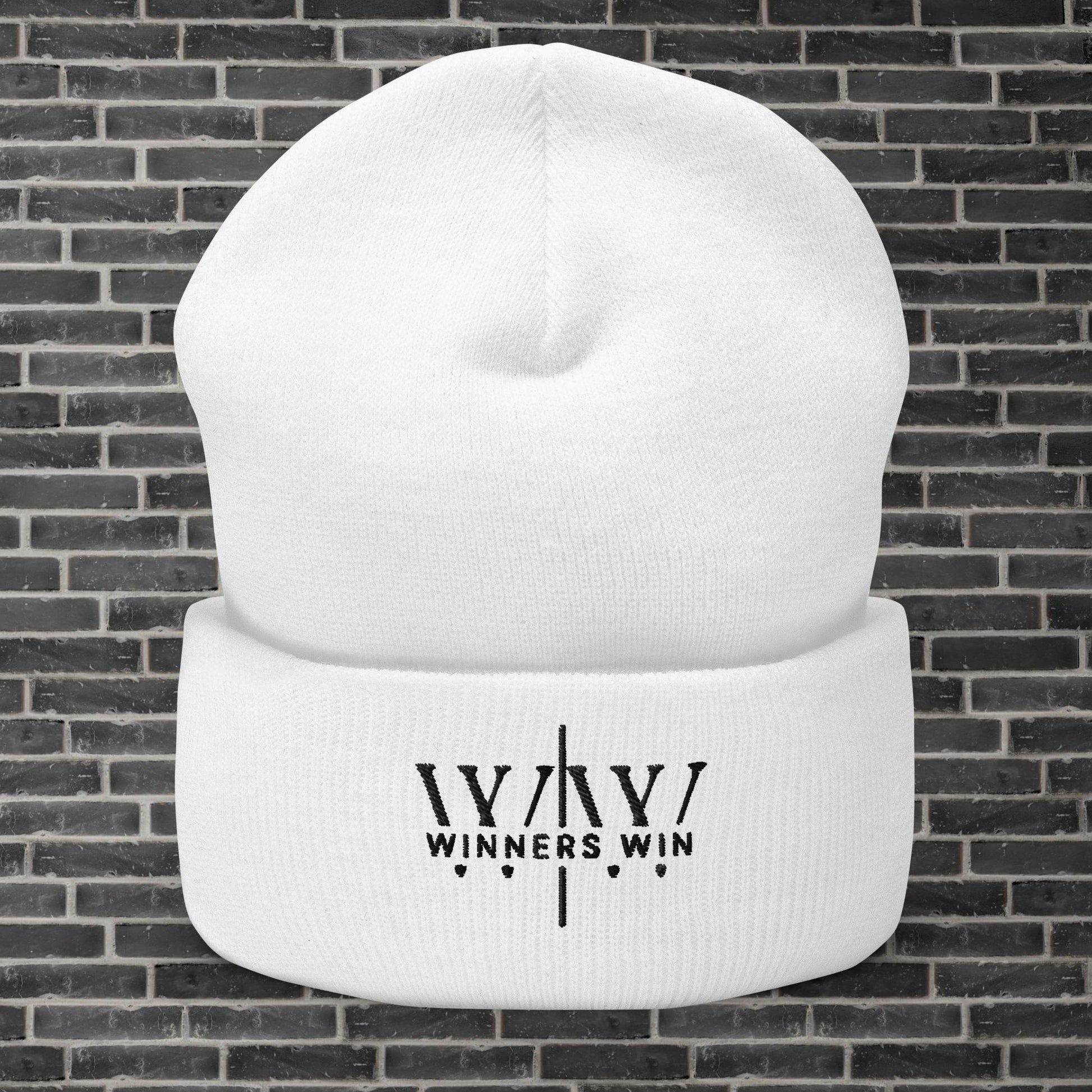 Stay warm, stay clean, and stay committed to the journey with the White Winners Win Beanie.